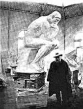 Título: Auguste Rodin con el modelo original en yeso de "El Pensador"